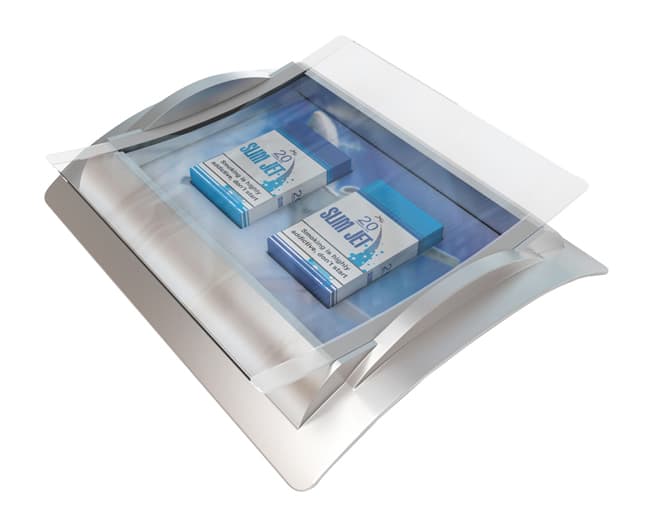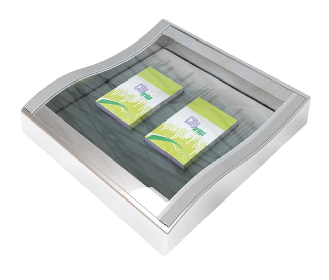 Mit einem Zahlteller aus Glas und Plastik wählen Sie eine beliebte Kombination für Cashtrays aus zwei robusten und langlebigen Materialien. Die Grundlage aus Plastik ist sehr widerstandsfähig und überzeugt durch eine vertraute Haptik, die Ihnen und Ihren Kunden den Austausch von Bargeld erleichtert. Der transparente Charakter von Glas sorgt für das besondere Funkeln und hilft Ihnen, Logos und Werbebilder ästhetisch und auffällig wiederzugeben.